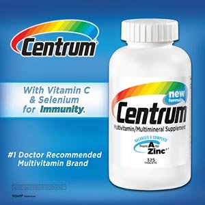 Reviews Best buy Centrum Multivitamin / Multimineral Supplement / 325 Tablets Health & Personal Care in household supplies Balanced and Complete from A to Zinc?? ?Contains all nutrients with an RDI. Suggested Use: Adults - One tablet daily with food. Not formulated for use in children. As with any supplement, if you are pregnant or nursing a baby, contact your healthcare professional. Supplement Facts: Serving Size: 1 Tablet Each Tablet Contains - % Daily Value: Vitamin A 3500 IU (29% as Beta Carotene) - 70%, Vitamin Medical Supplies & Equipment 10-50% Off or More Health & Personal Care , Medical Supplies & Equipment , Stationery & Party Supplies and more. Online All Health Care Store.